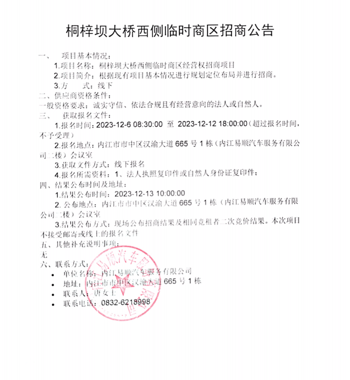 桐梓坝大桥西侧临时商区招商公告采购公告