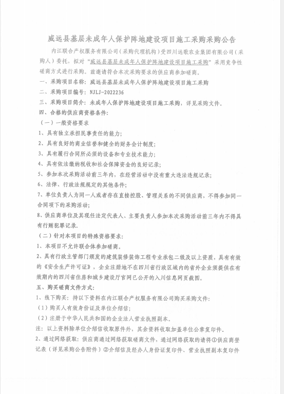 威远县基层未成年人保护阵地建设项目施工采购采购公告