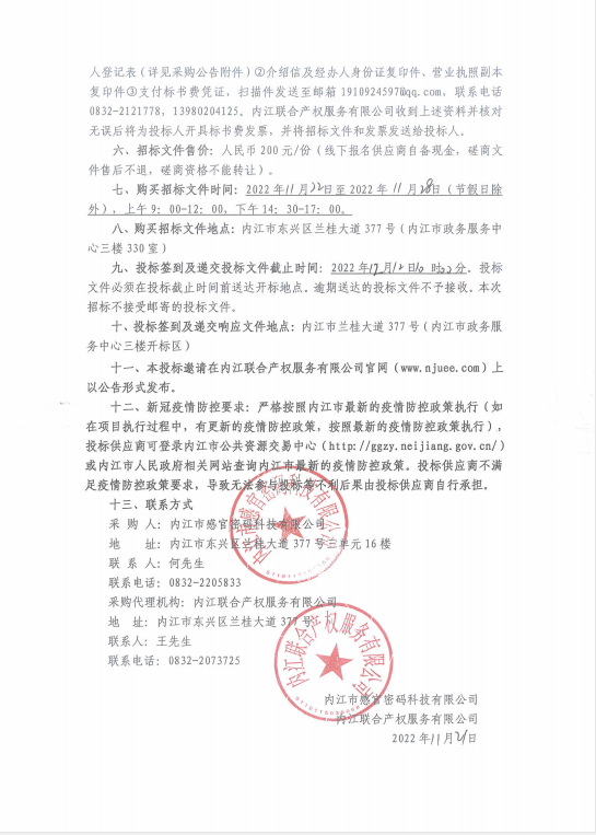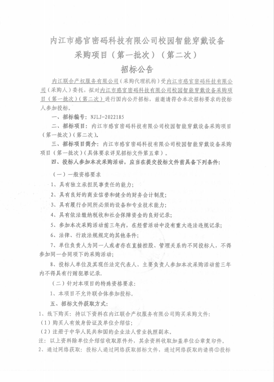 内江市感官密码科技有限公司校园智能穿戴设备采购项目(第一批次)(第二次)招标公告