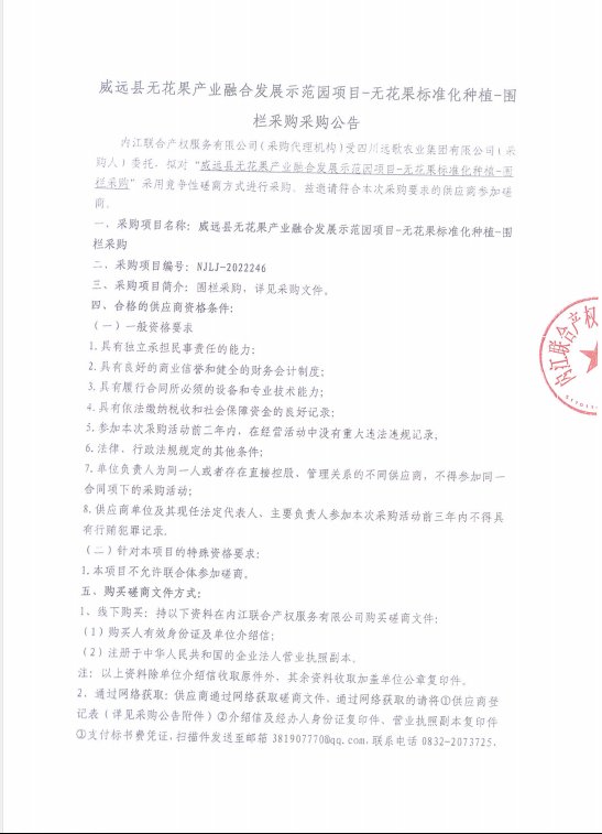 威远县无花果产业融合发展示范园项目-无花果标准化种植-农机设备采购采购公告