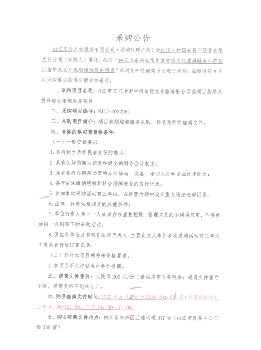 内江市东兴老街申报省级文化旅游融合示范项目指导及提升规划编制服务项目采购公告