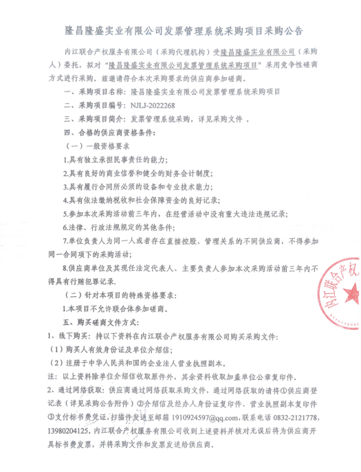隆昌隆盛实业有限公司发票管理系统采购项目采购公告