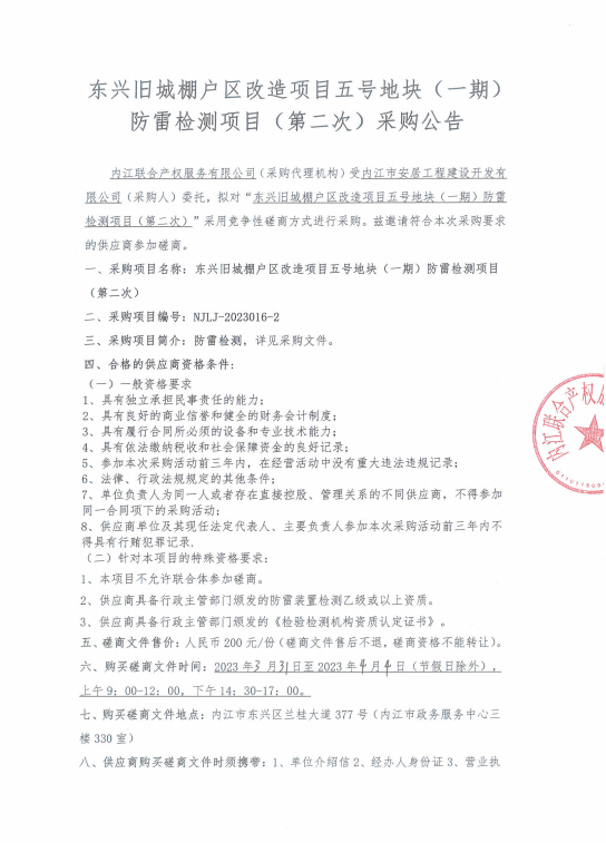 东兴旧城棚户区改造项目五号地块(一期)防雷检测项目(第二次)采购公告