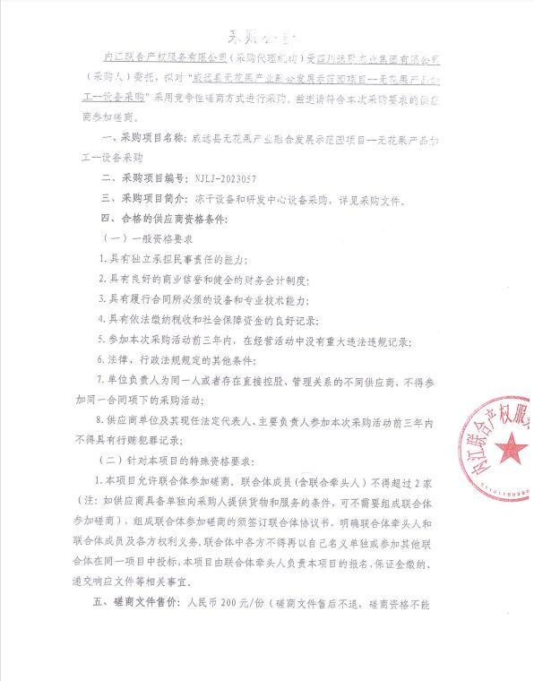 威远县无花果产业融合发展示范园项目--无花果产品加工--设备采购采购公告