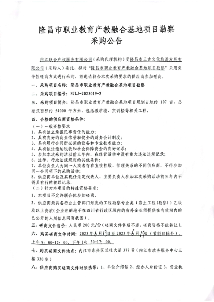 隆昌市职业教育产教融合基地项目勘察采购公告