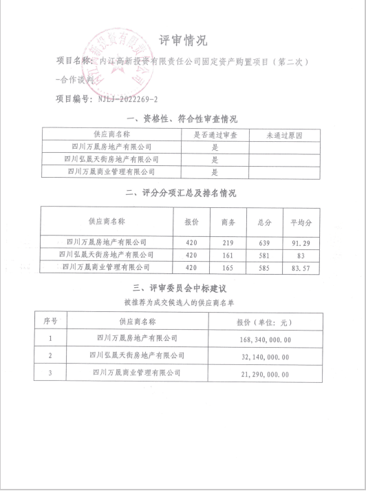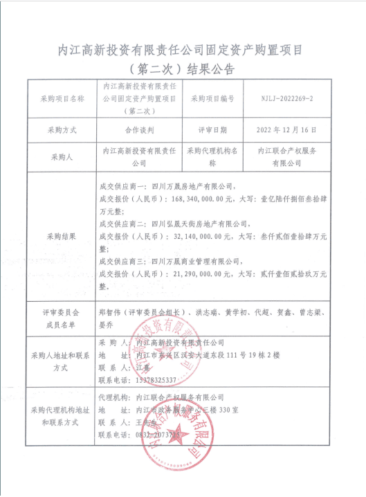 内江高新投资有限责任公司固定资产购置项目(第二次)结果公告