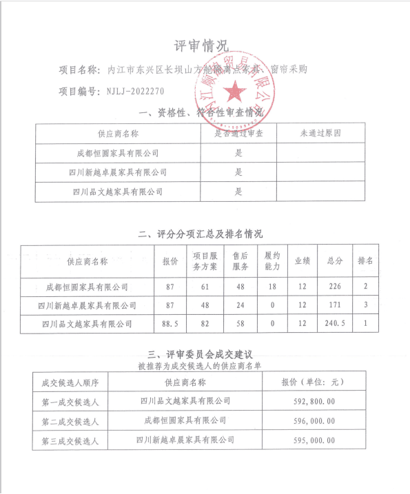 内江市东兴区长坝山方舱隔离点家具、窗帘采购结果公告