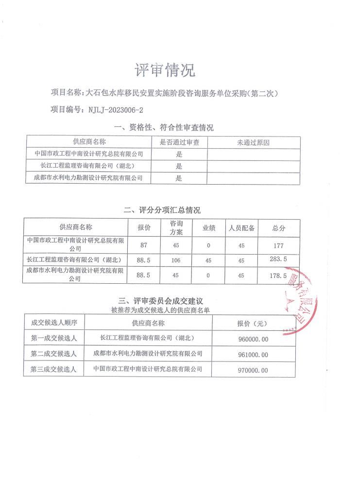 大石包水库移民安置实施阶段咨询服务单位采购(第二次)