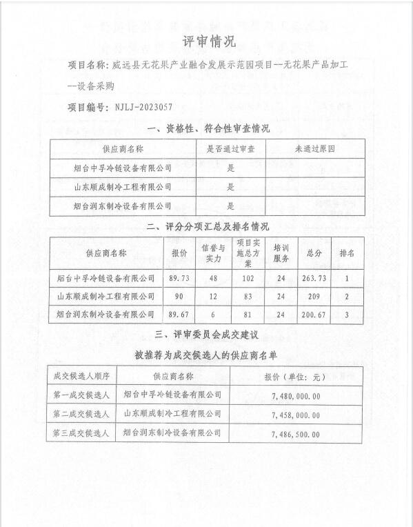 威远县无花果产业融合发展示范园项目--无花果产品加工--设备采购结果公告