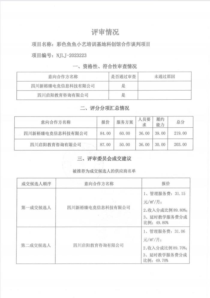 彩色鱼鱼小艺培训基地科创馆合作谈判项目结果公告