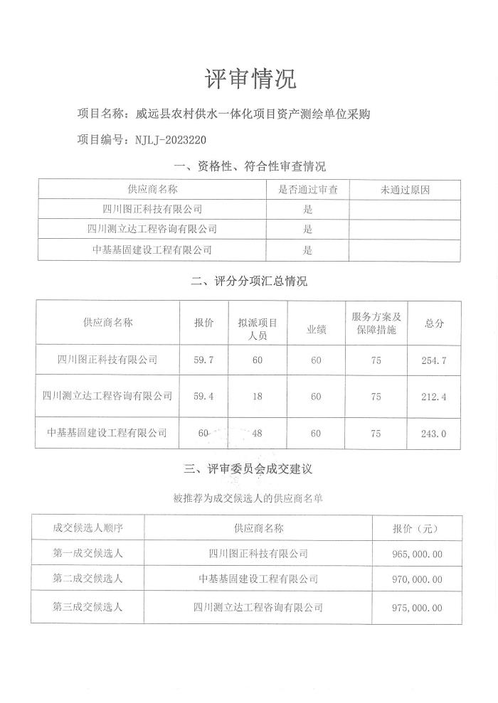 威远县农村供水一体化项目资产测绘单位采购结果公示