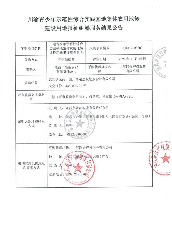 川渝青少年示范性综合实践基地集体农用地转建设用地报征组卷服务结果公告
