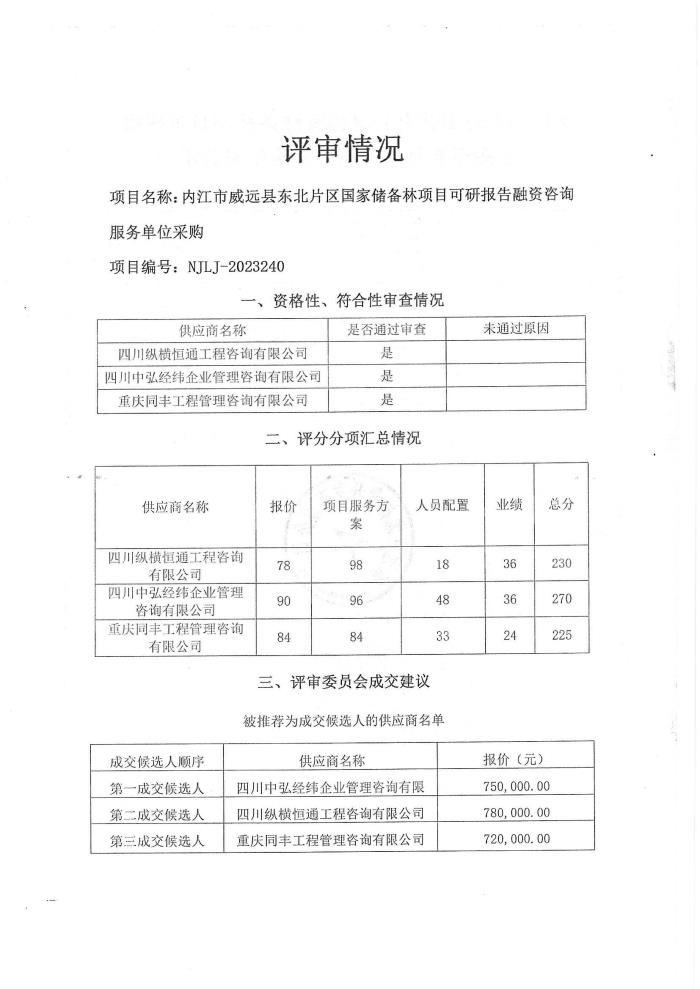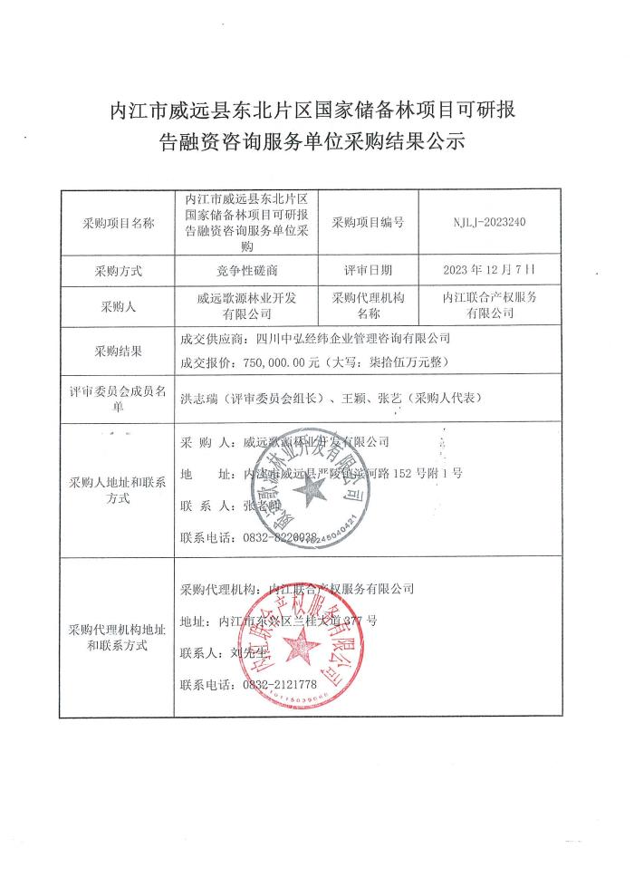 内江市威远县东北片区国家储备林项目可研报告融资咨询服务单位采购结果公示