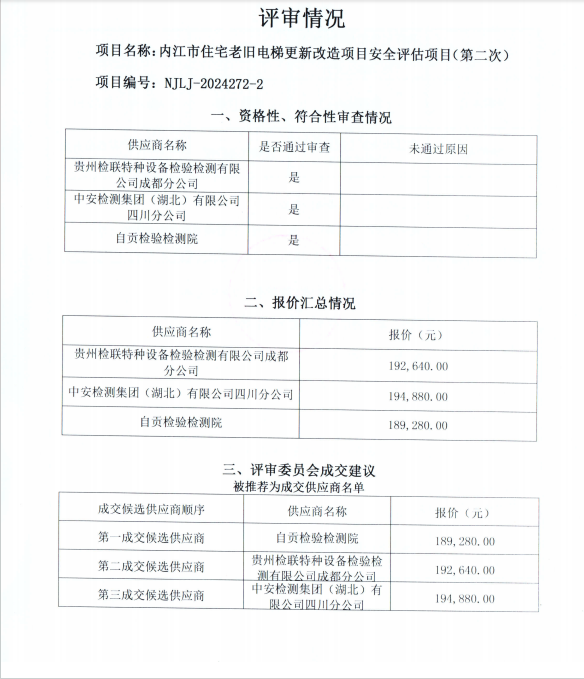 内江市住宅老旧电梯更新改造项目安全评估项目(第二次)结果公告
