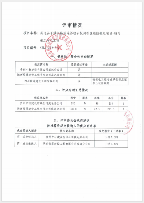 威远县采煤沉陷区连界镇石板河社区避险搬迁项目-临时施工用电工程结果公告