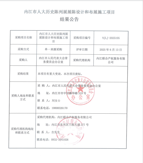 内江市人大历史陈列展展陈设计和布展施工项目结果公告
