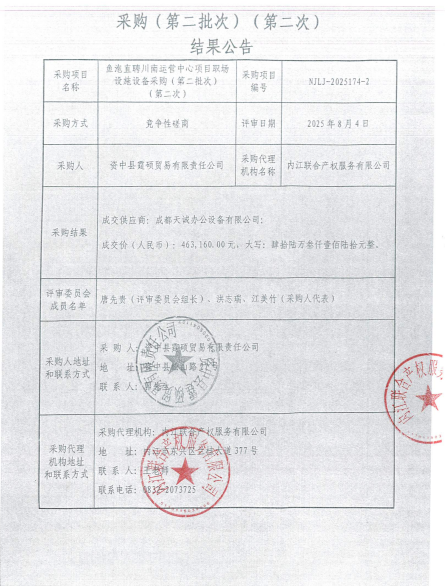 鱼泡直聘川南运营中心项目职场设施设备采购(第二批次)(第二次)结果公告