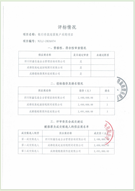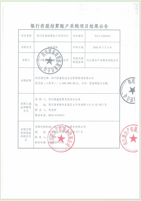 银行存款结算账户采购项目结果公告